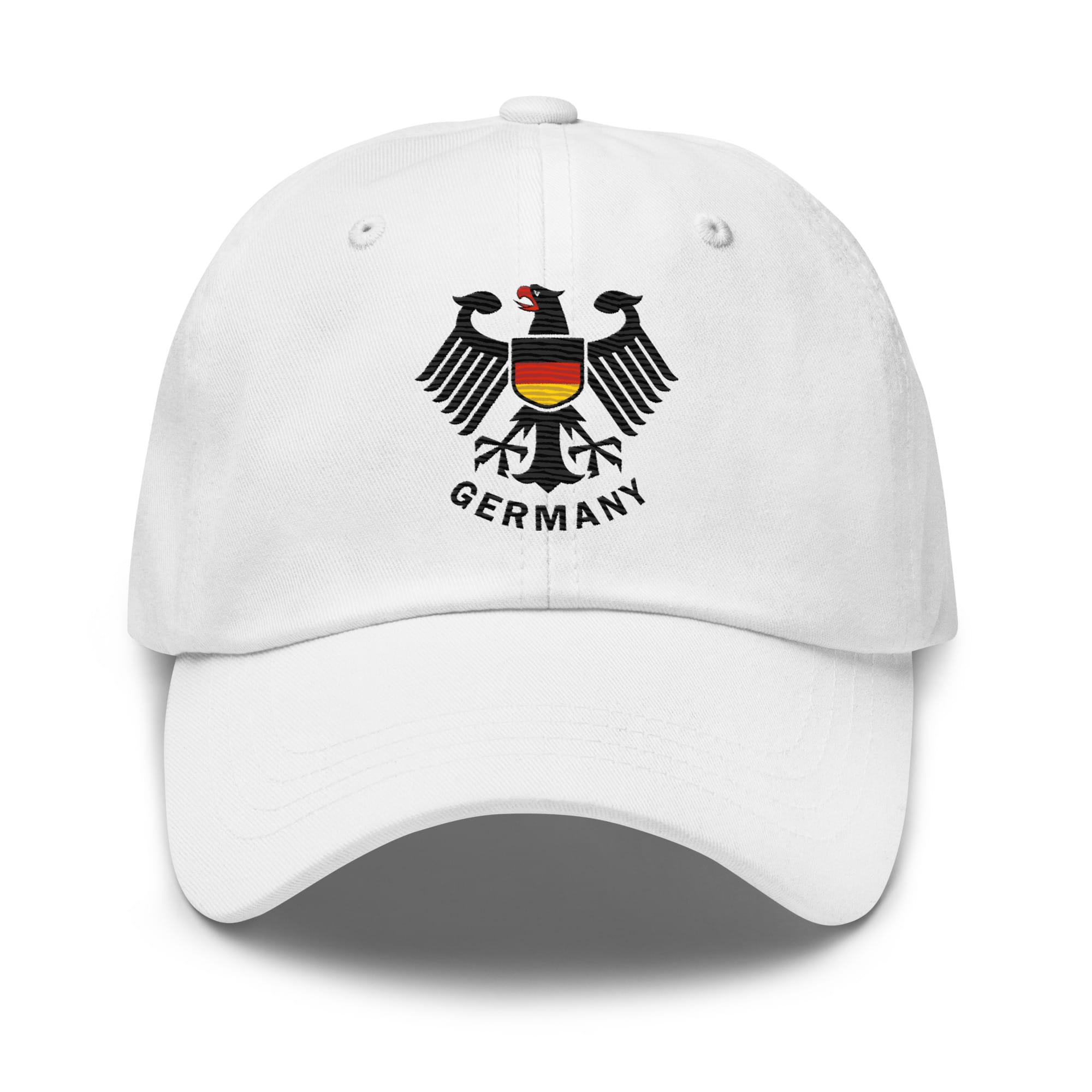Celebrate your heritage and style with our premium Germany Eagle Emblem Embroidery Dad Hat. This high-quality cap features a detailed, multi-thread embroidery of the iconic German federal eagle (Bundesadler) on the front panel, offering a bold and classic statement.