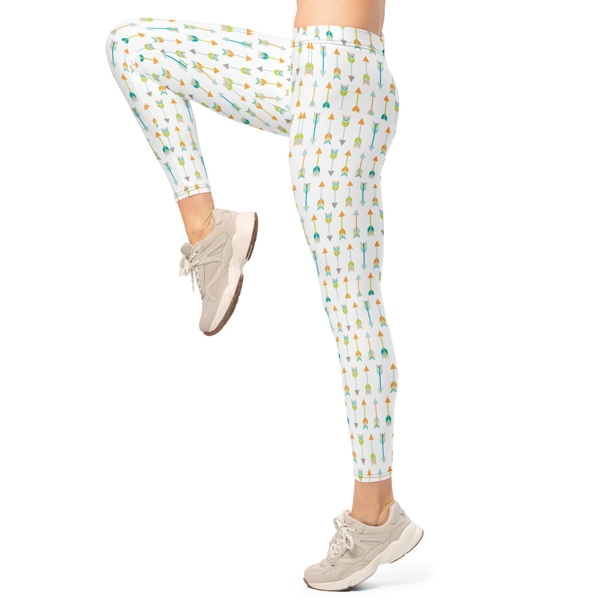 Whether you’re hitting the studio, running errands, or layering for a bold fashion look, the intricate tribal arrows design adds visual depth and dynamic energy to your ensemble. The pattern wraps seamlessly around the legs for a cohesive, artistic silhouette—no awkward seams or cut-offs.